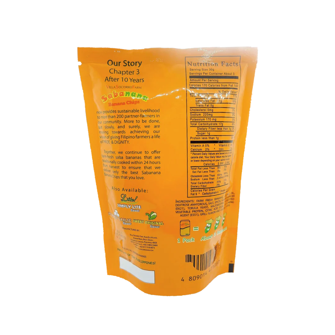 Made from green bananas of the Philippine Saba variety which are washed, peeled, sliced, cooked and packed all within 24 hours to offer thin, crunchy and amazing banana chips!